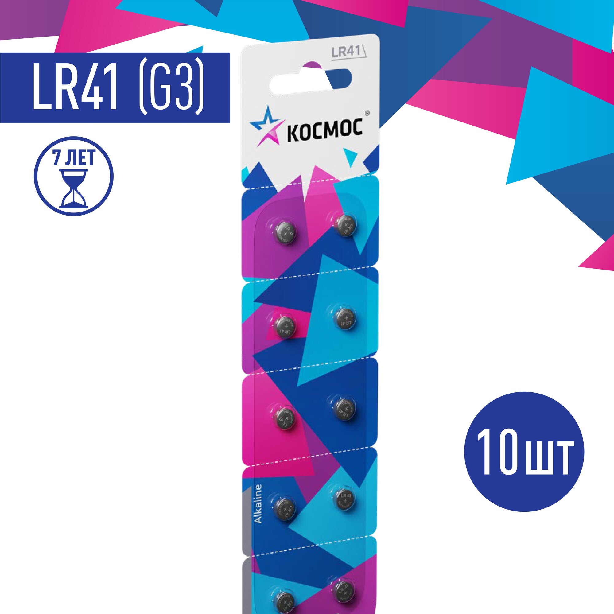 Космос Элемент питания алкалиновый "таблетка" LR41/AG3 для часов (блист.10шт) космос KOCG3(LR41)10BL