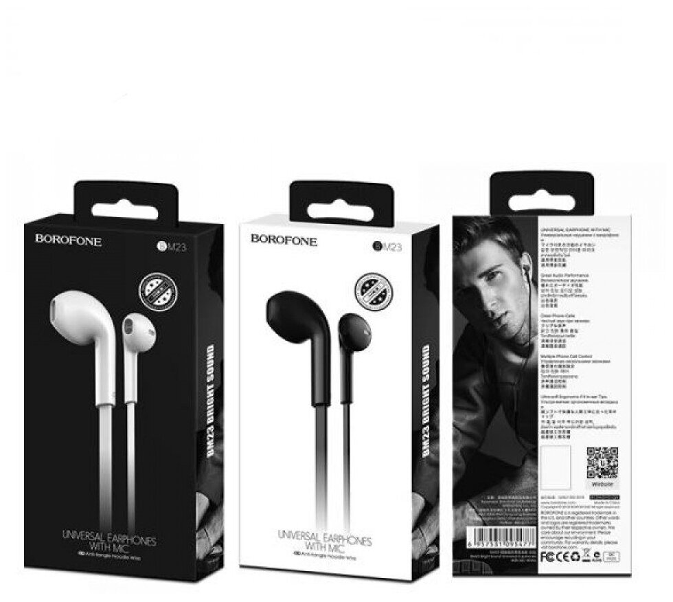 Наушники проводные BOROFONE BM23 вкладыши с микрофоном, 1,2 метра, черный