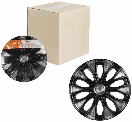 Колпаки колесные 14" "Волтек Т", серебристый/черный, карбон, компл. 2 шт.
