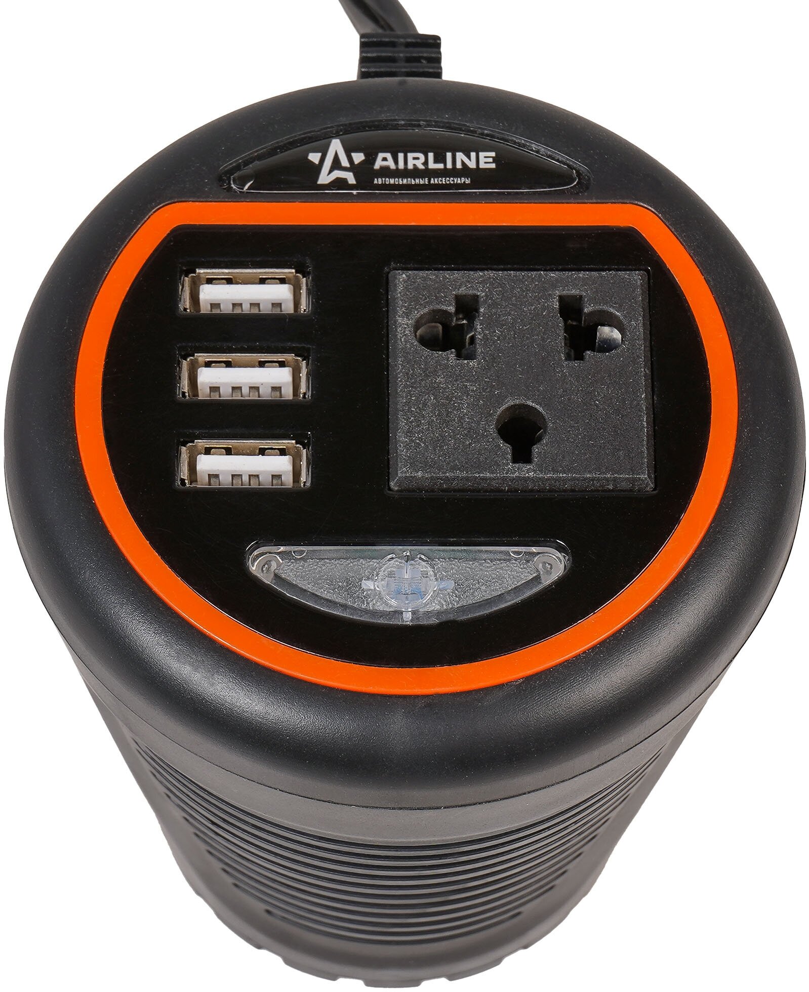 AIRLINE API-120-00 Инвертор 12В-220В 120 Вт в подстаканник + 3USB (API-120-00)
