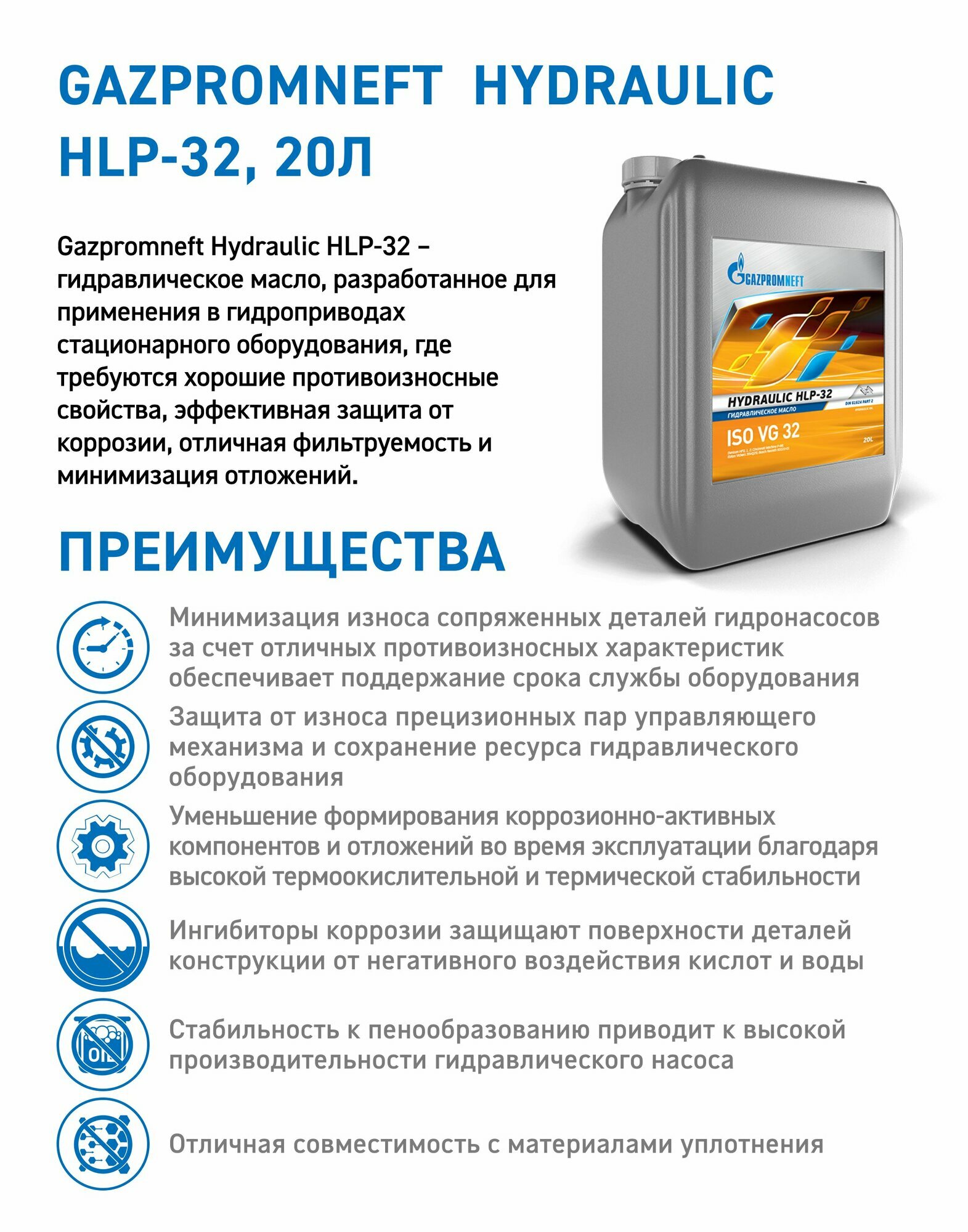Масло Гидравлическое Gazpromneft Hydraulic Hlp 32 Минеральное 20Л. Gazpromneft арт. 253421942