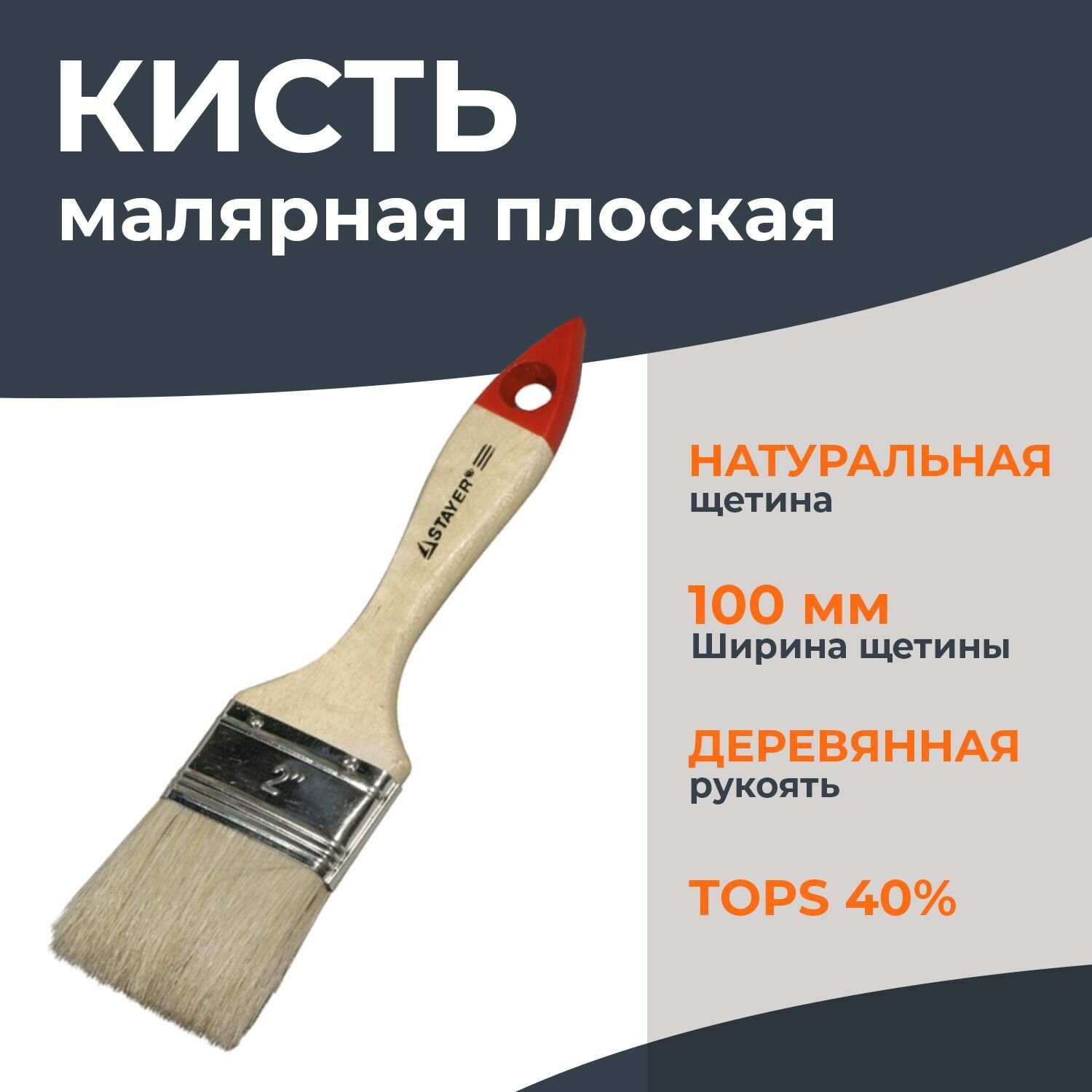 Малярная кисть STAYER UNIVERSAL, 100 мм, 4″, светлая натуральная щетина, деревянная ручка, все виды ЛКМ, плоская кисть (0101-100)