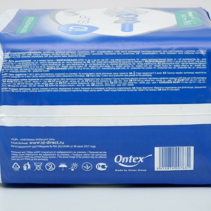 Подгузники для взрослых iD SLIP, размер L, 30 шт, обхват талии 100-160 см, для тяжелой степени недержания