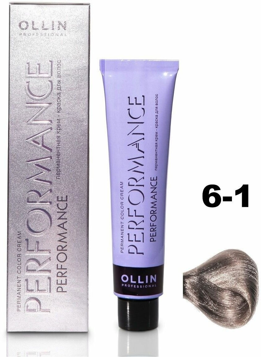 Ollin Performance крем-краска для волос 6/1 темно-русый пепельный 60мл