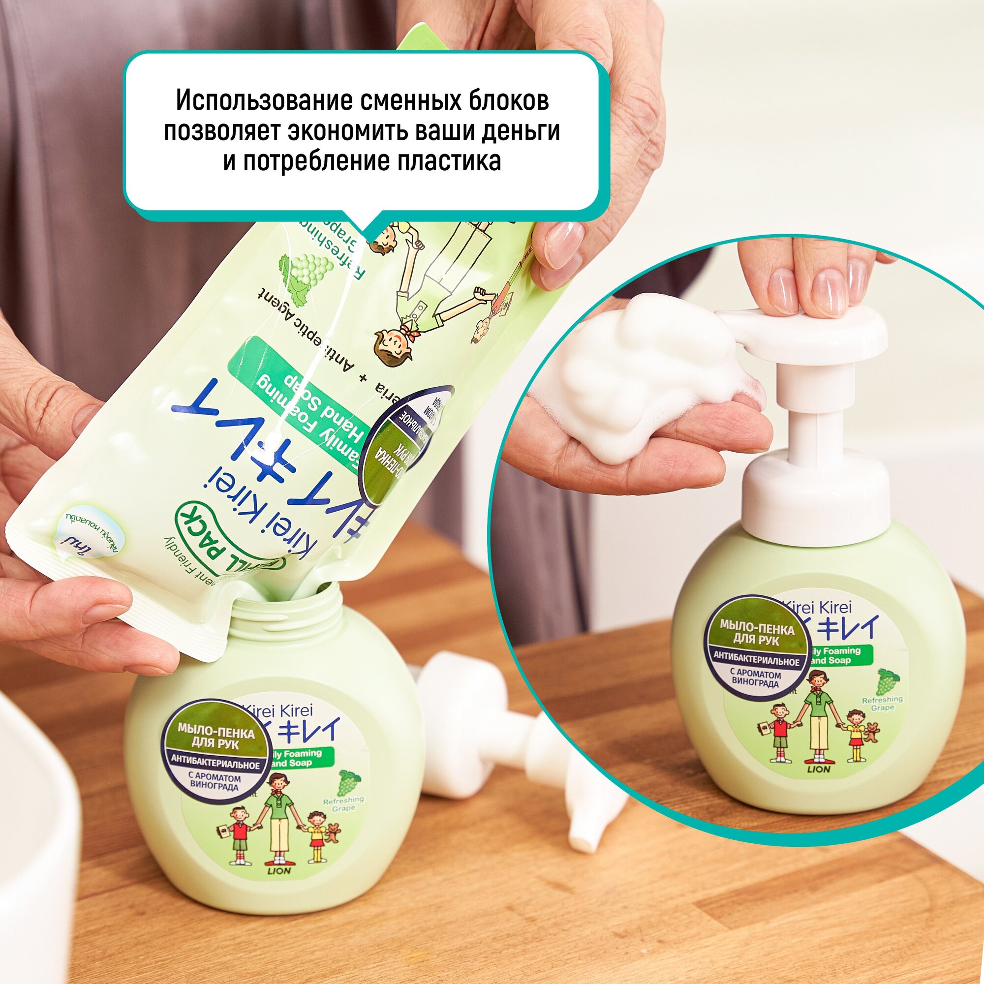 LION THAILAND, KIREI KIREI, Мыло-пенка антибактериальная для рук, Зеленый виноград (запасной блок), 200мл