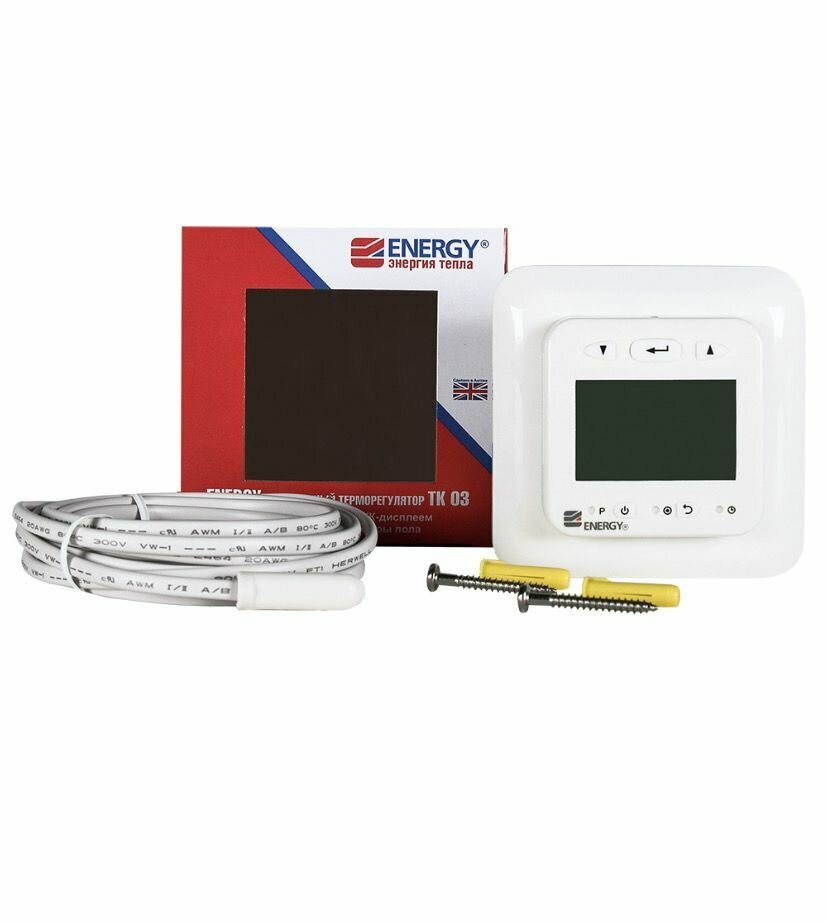 Терморегулятор/термостат для теплого пола Energy TK03 электронный программируемый с датчиком температуры, цвет белый