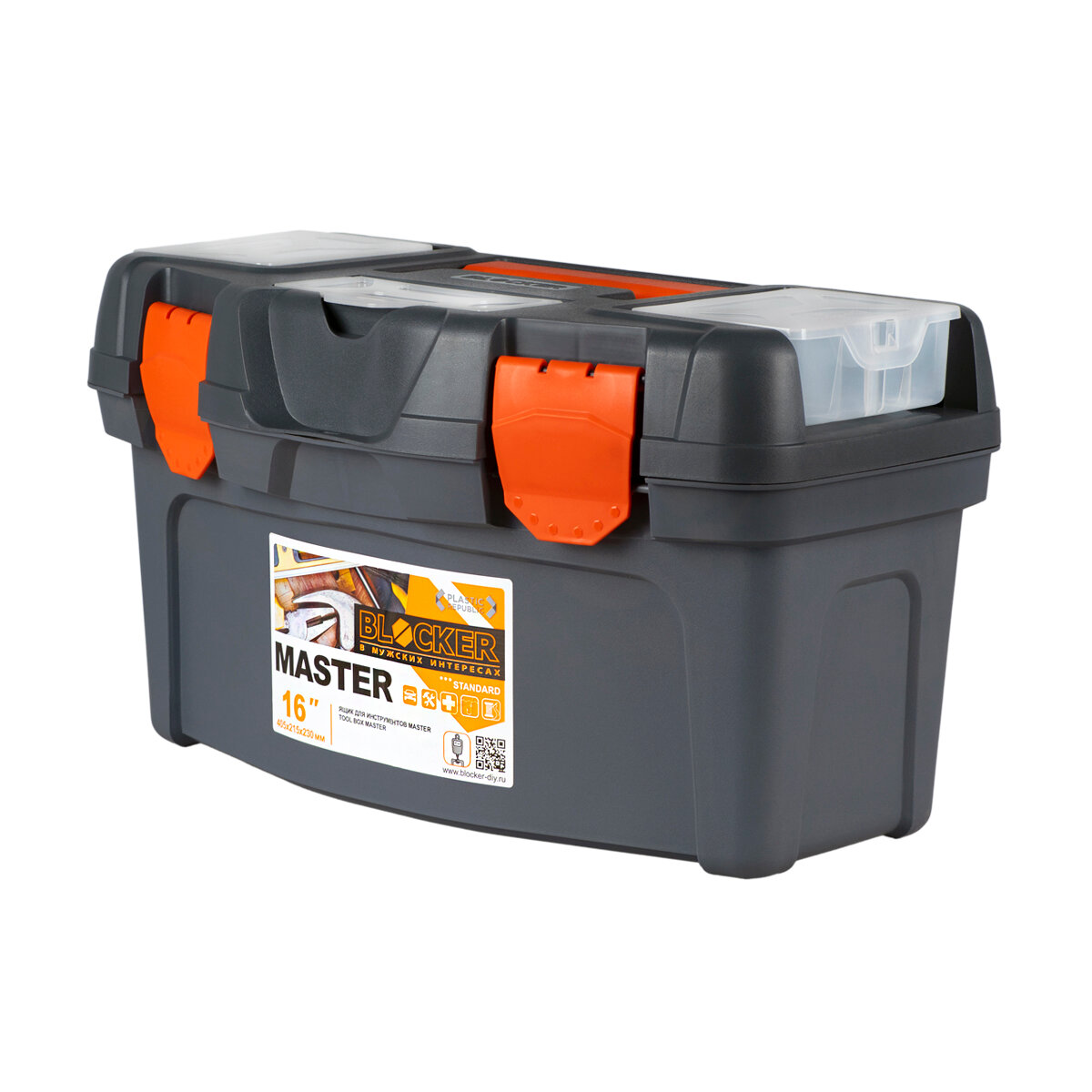 Купить Ящик для инструментов BLOCKER Master 16 серо-свинцовый/оранжевый со съёмными органайзерами 408х218х223