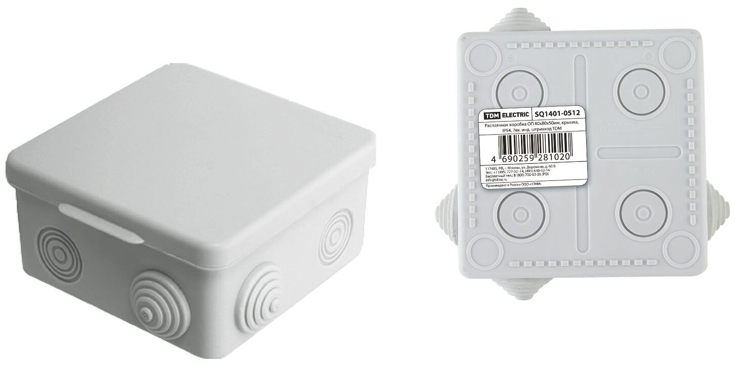 Коробка распаячная TDM ОП 80х80х50мм, крышка, IP54, 7 входов, индивидуальный штрихкод SQ1401-0512