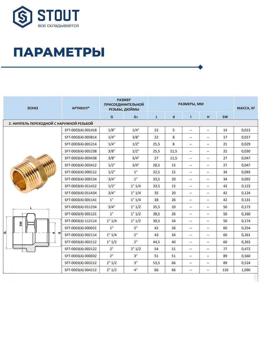 STOUT Ниппель НН переходной никелированный 1/2X1/4 SFT-0004-001214 RG008Q0OCNLVDC