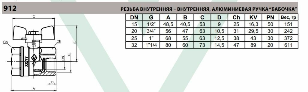 Кран шаровой латунный LD Pride 47.15. В-ГШ. Б исп.2 Ду 15 Ру 40 бабочка