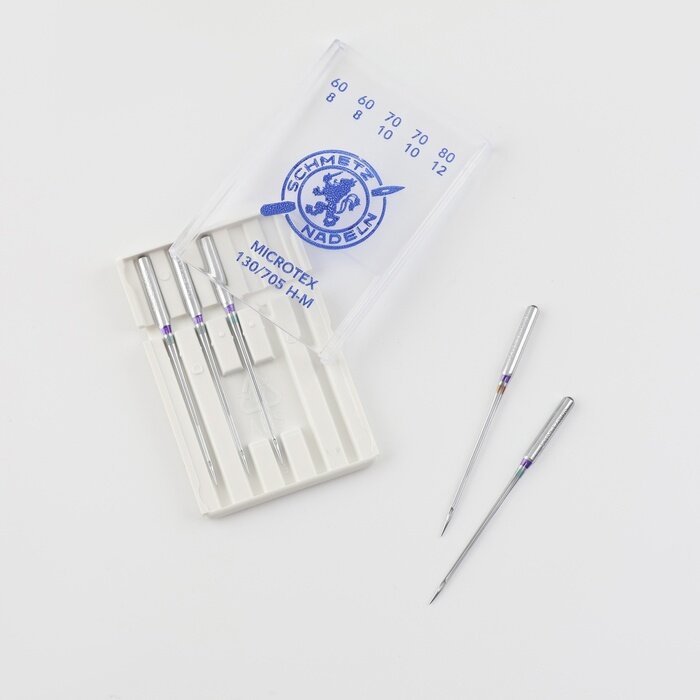 Швейные иглы микротекс (особо острые) № 60 (2), 70 (2), 80, 5 штук, Schmetz 130/705Н-M для швейных машин