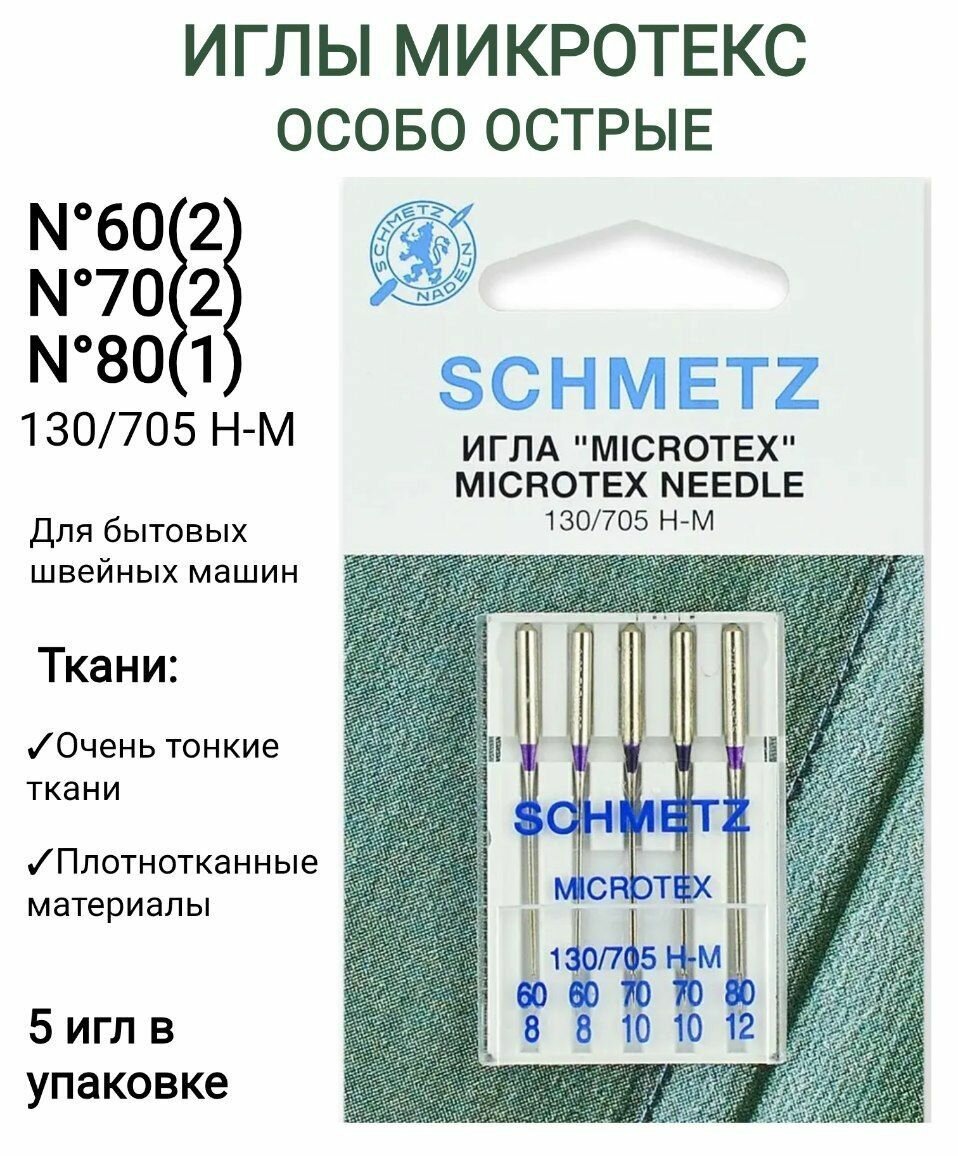 Купить Schmetz Иглы для бытовых швейных машин, микротекс, №60/70/80, 5 шт