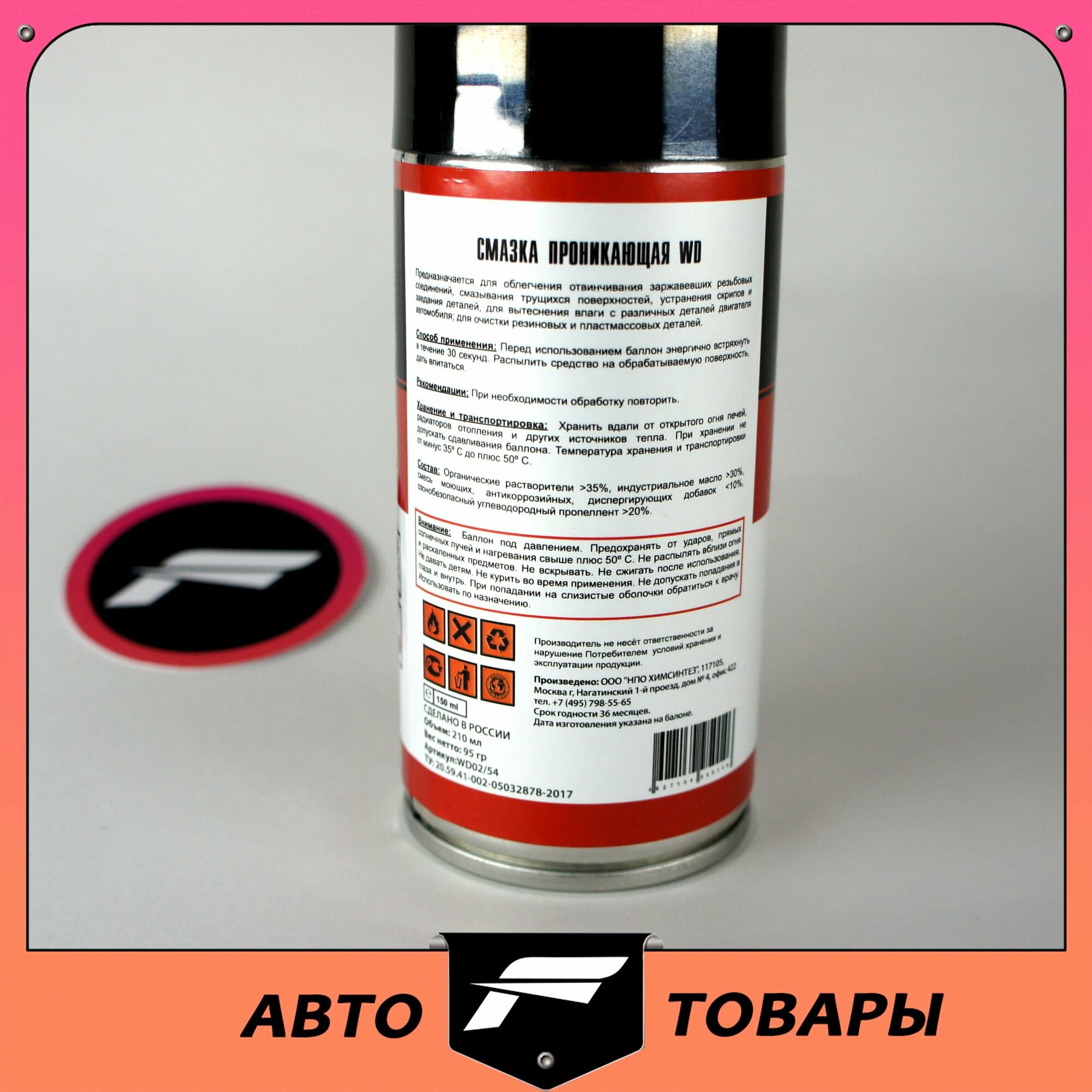 Ниже Вы можете прочитать отзывы на ТТ WD02/54 Смазка универсальная проникающая WD 210мл аэрозоль ТТ, ознакомится с подробными характеристиками, посмотреть интересные обзоры и фотографии на ТТ WD02/54 Смазка универсальная проникающая WD 210мл аэрозоль ТТ.