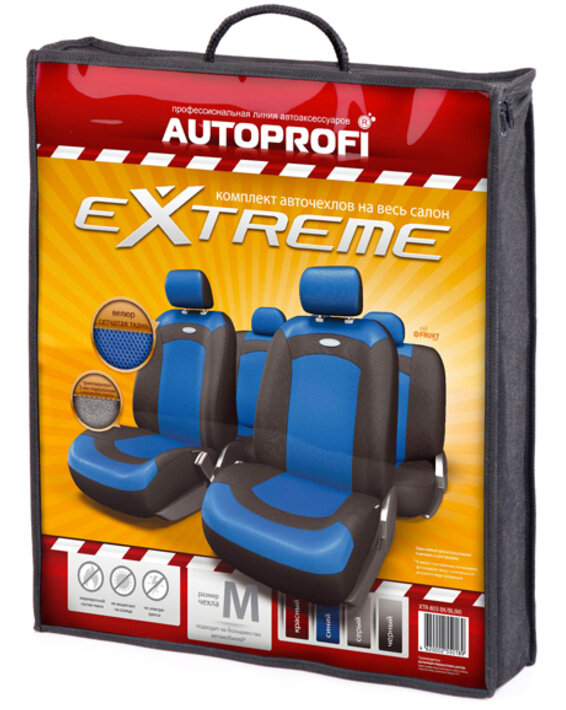 чехлы универсальные autoprofi extreme xtr-803 bk/bl черные/синие