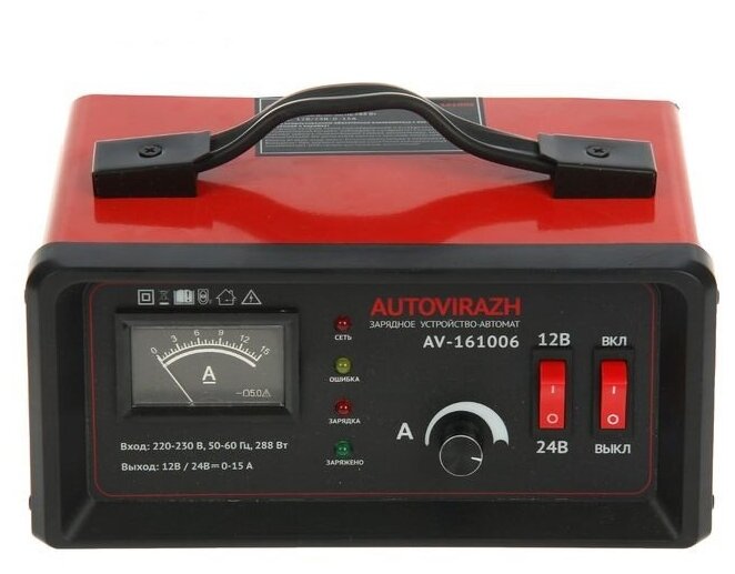 Купить Зарядное Устройство Для Акб (Автомат, 0-15А,До 180 Ач,12/24В,Стрелочн.индик.) AUTOVIRAZH арт. AV-161006