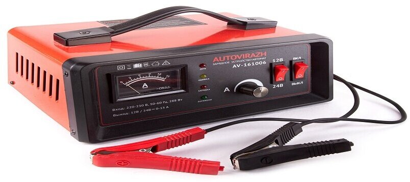 AUTOVIRAZH AV-161006 Зарядное устройство для АКБ (автомат, 0-15А, до 180 Ач,12/24В, стрелочн.индик.)
