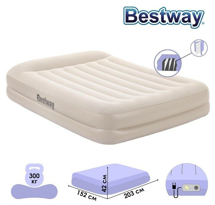 Надувной матрас Queen со встроенным электронасосом, PVC, 203x152см x 42см BESTWAY