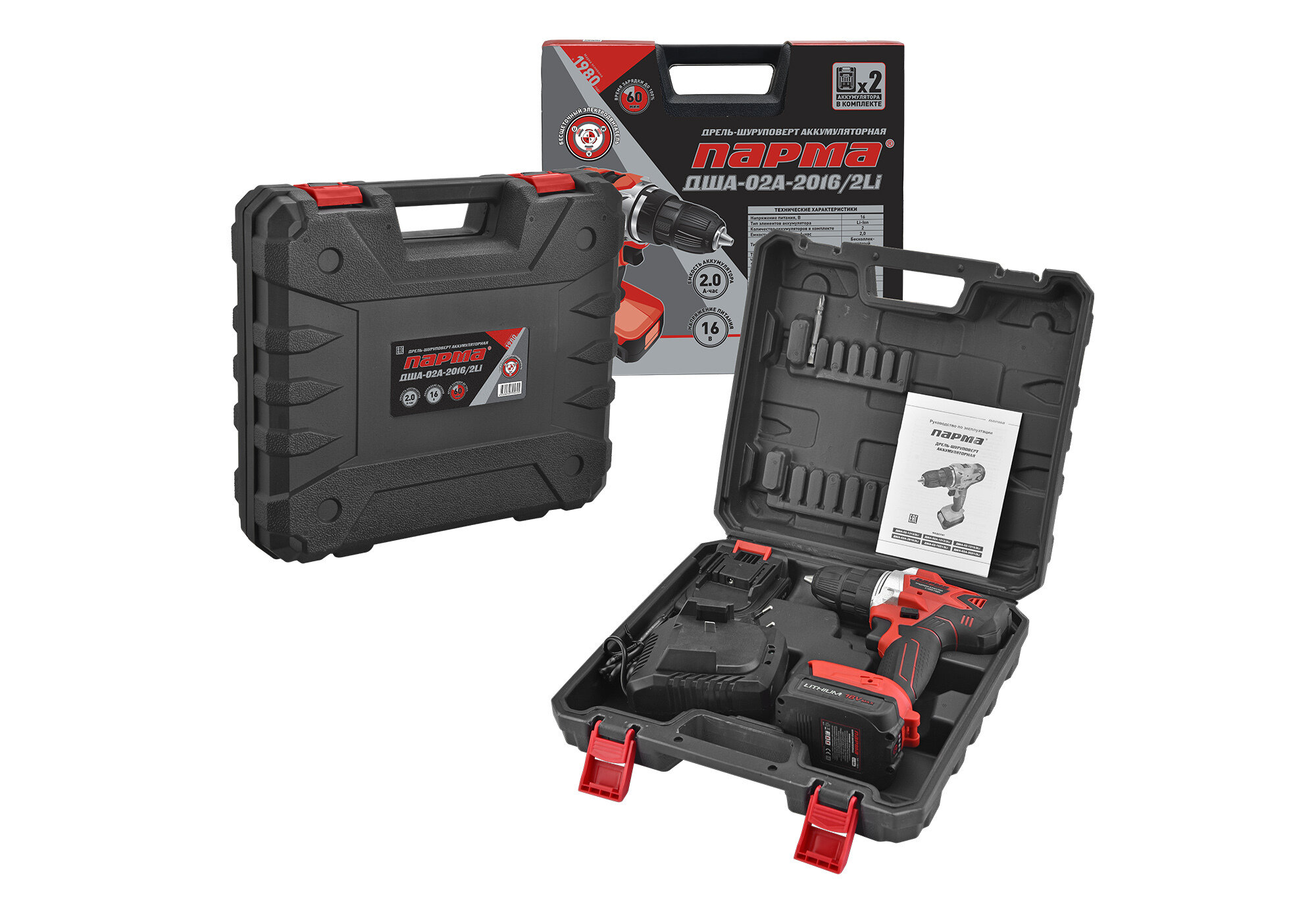 Дрель-шуруповерт Парма ДША-02А-2016/2Li аккум. патрон:быстрозажимной (кейс в комплекте) (02.021.0001
