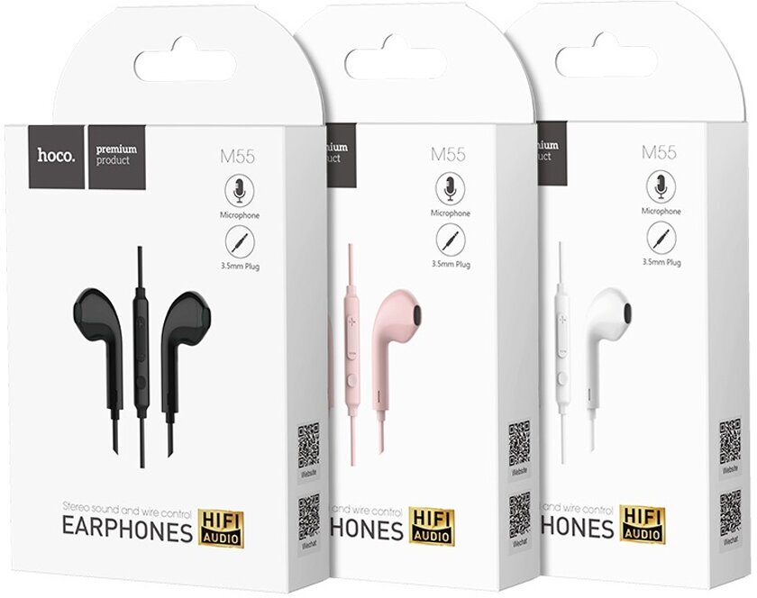 Наушники Hoco M55, проводные, вкладыши, микрофон, Jack 3.5, 1.2 м, черные