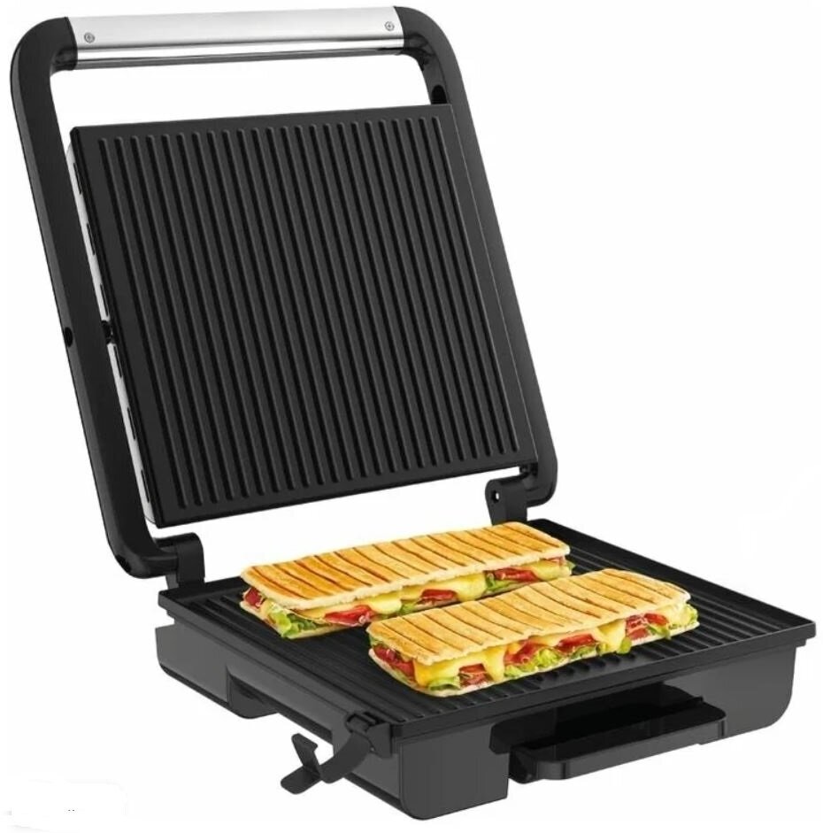 Электрогриль DOMFY Metal DSM-EG502, черный и серебристый