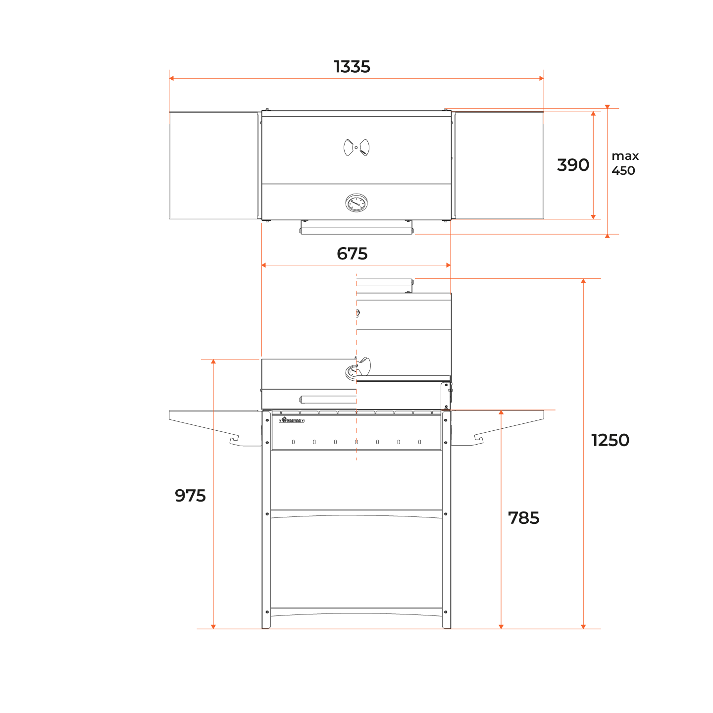 | Плюсы: | Есть термометр что позволяет контролировать температуру, две полки в низу, ещё можно докупить решетку для гриля и подставку для казана |