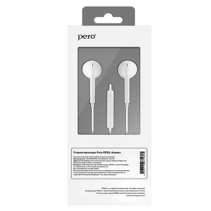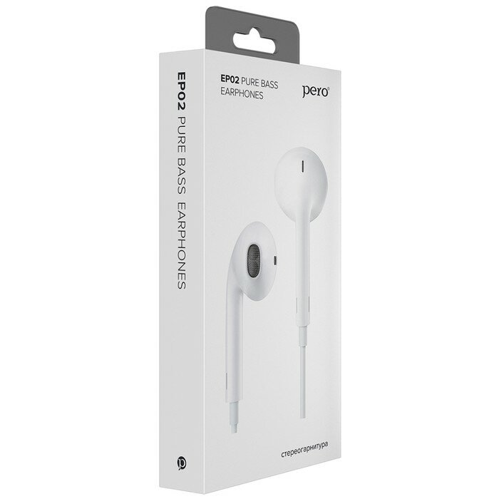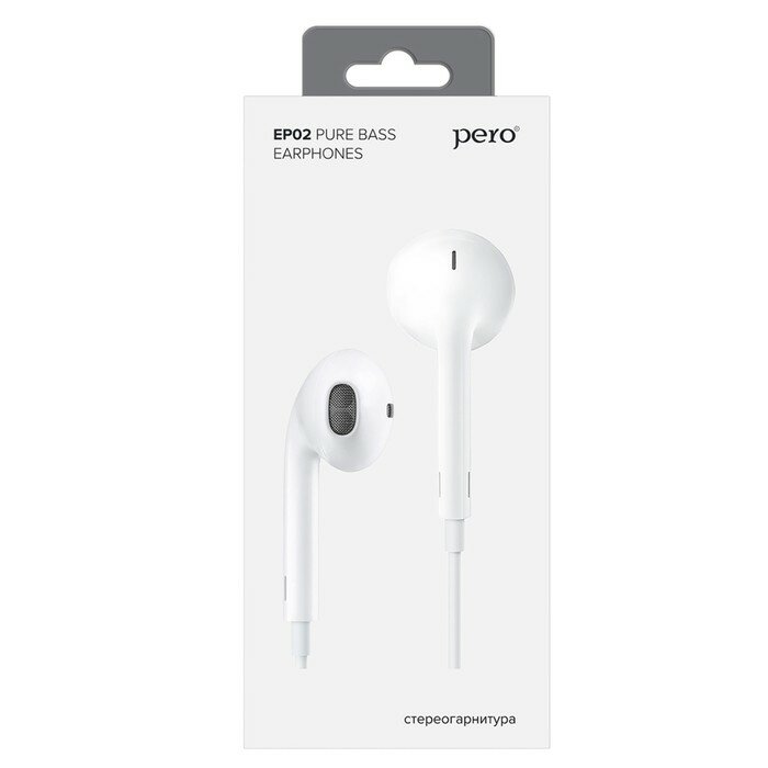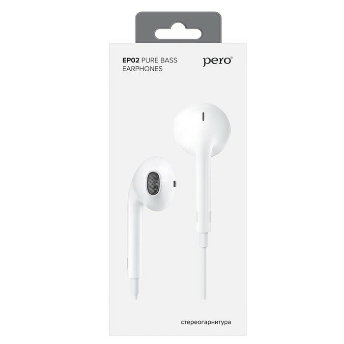 Купить Наушники PERO EP02, вкладыши, микрофон, 110 дБ, 32 Ом, 3.5 mm, 1.2 м, белые