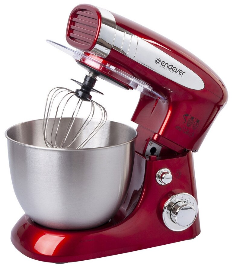 Кухонная машина Endever Sigma-20 (планетарный миксер), мощность 1000 Вт (красный/серебристый)