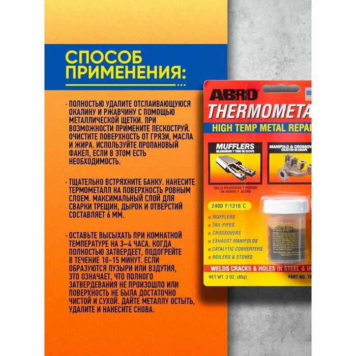 Купить ABRO TM185 TM-185_термометалл! 85 г Теплостойкость до 1316°С\