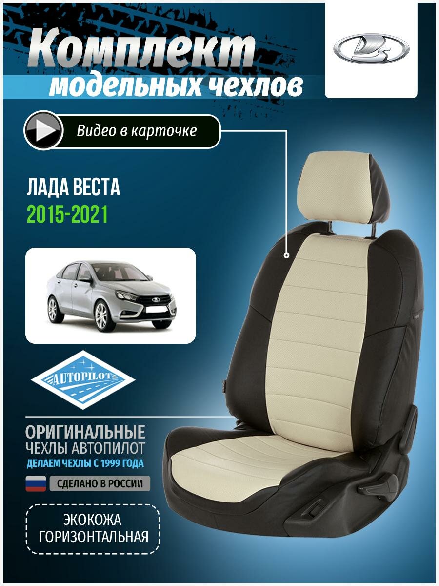 Чехлы на сиденья "АВТОПИЛОТ" из экокожи для LADA Vesta/Vesta SW Cross Черный, Бежевый. va-lv-vt-chebe-e