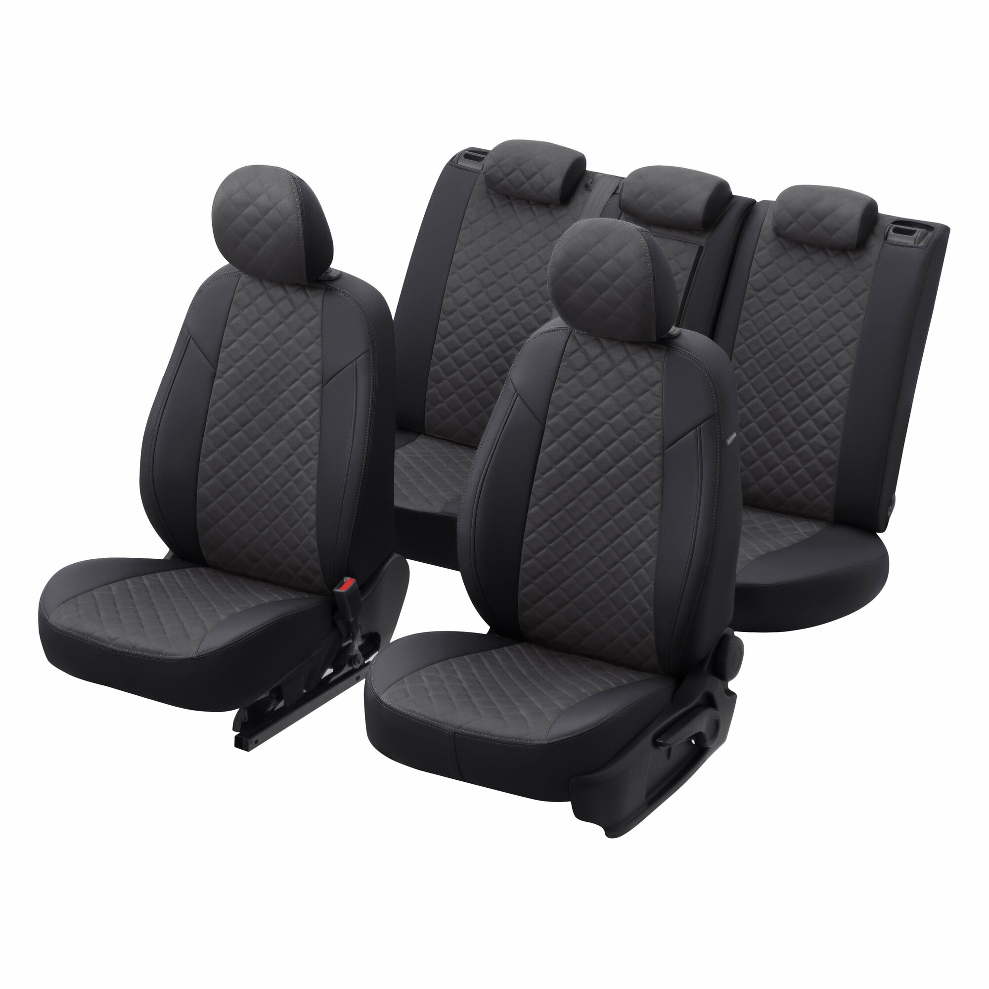 Купить Комплект чехлов Автопилот Алькантара ромб Hyundai Solaris I Sd / KIA Rio III Sd (40/60) с 10-17г. Черный + Темно-серый