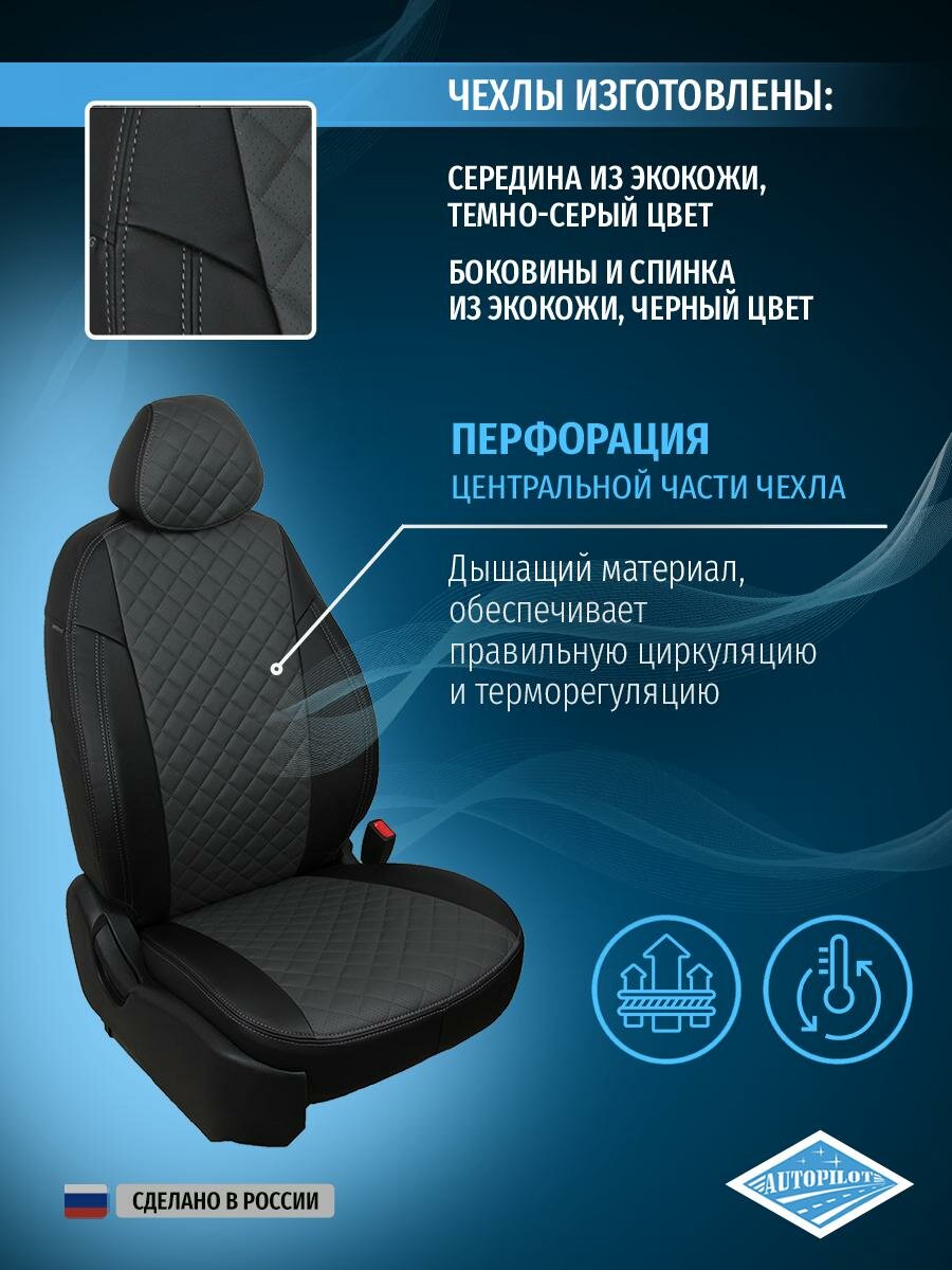 Модельные авточехлы АВТОПИЛОТ для Toyota Land Cruiser Prado 150 (5 мест, 2009-2017гг) экокожа ромб, темно-серые