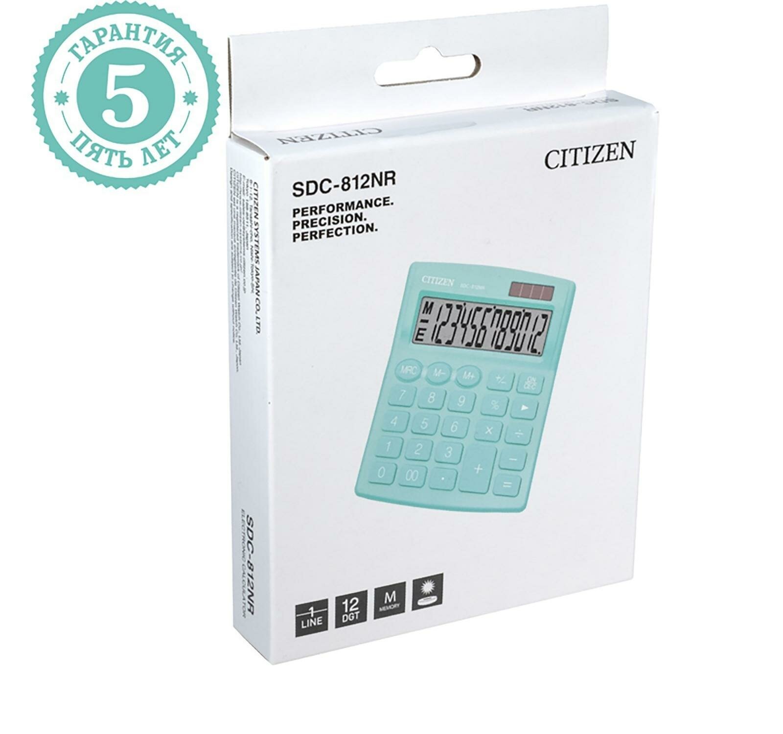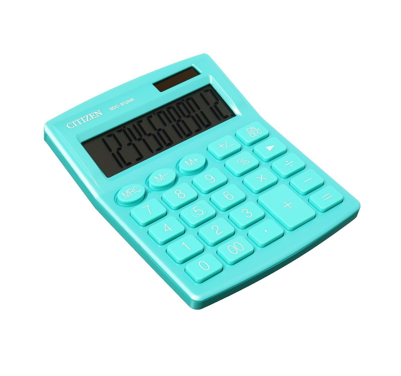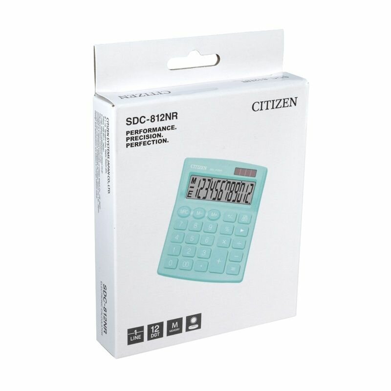 Калькулятор настольный CITIZEN SDC-812NRGNE, компактный (124х102 мм), 12 разрядов, двойное питание, бирюзовый