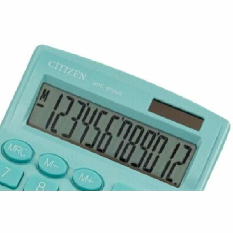 Калькулятор настольный Citizen SDC-812NR-GN, 12 разрядов, двойное питание, 102*124*25мм, бирюзовый, 292295