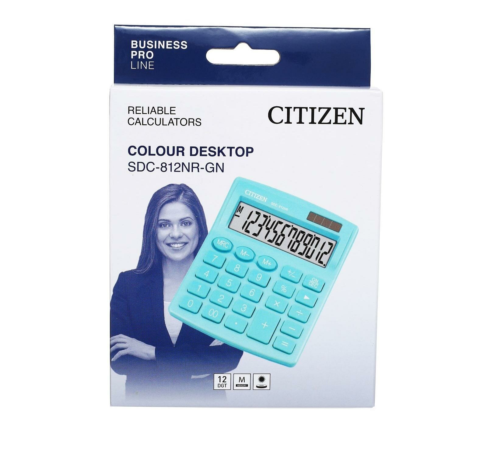 Калькулятор настольный Citizen 12-ти разрядный, двойное питание, компактный, зеленый (SDC-812NRGNE)