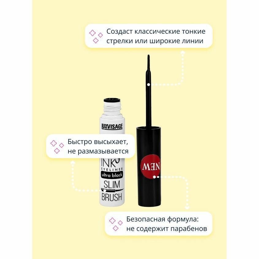 Подводка для глаз Luxvisage "Vinyl Ink", Ultra Black, тонкая кисточка