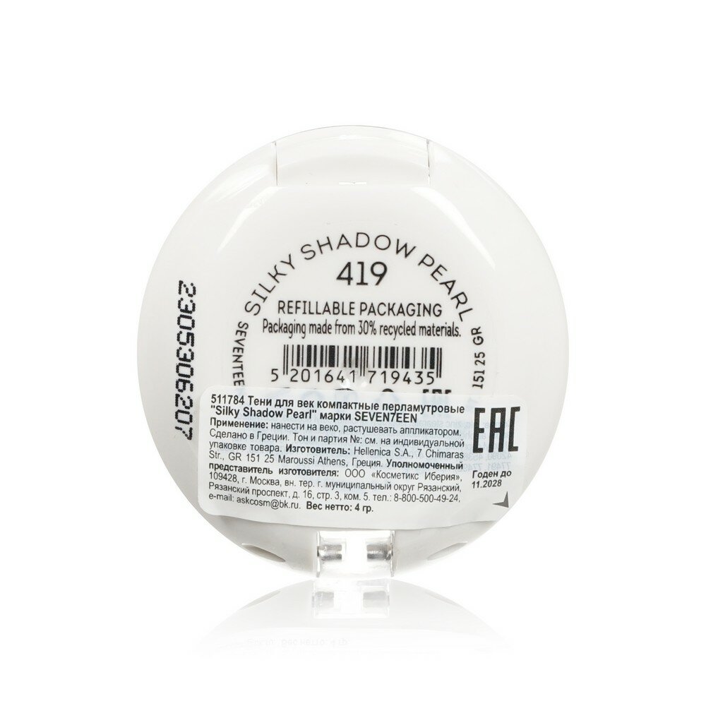SEVEN7EEN Тени для век компактные перламутровые "SILKY SHADOW PEARL" № 419