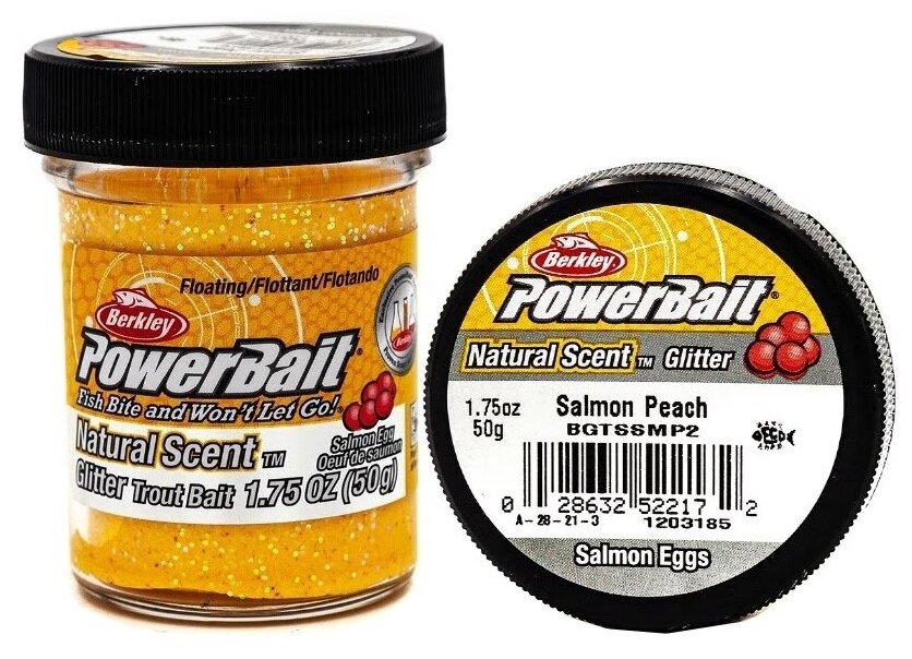 Паста форелевая Berkley PowerBait NATURAL SCENT Glitter TROUT BAIT 50gr SALMON EGG - PEACH