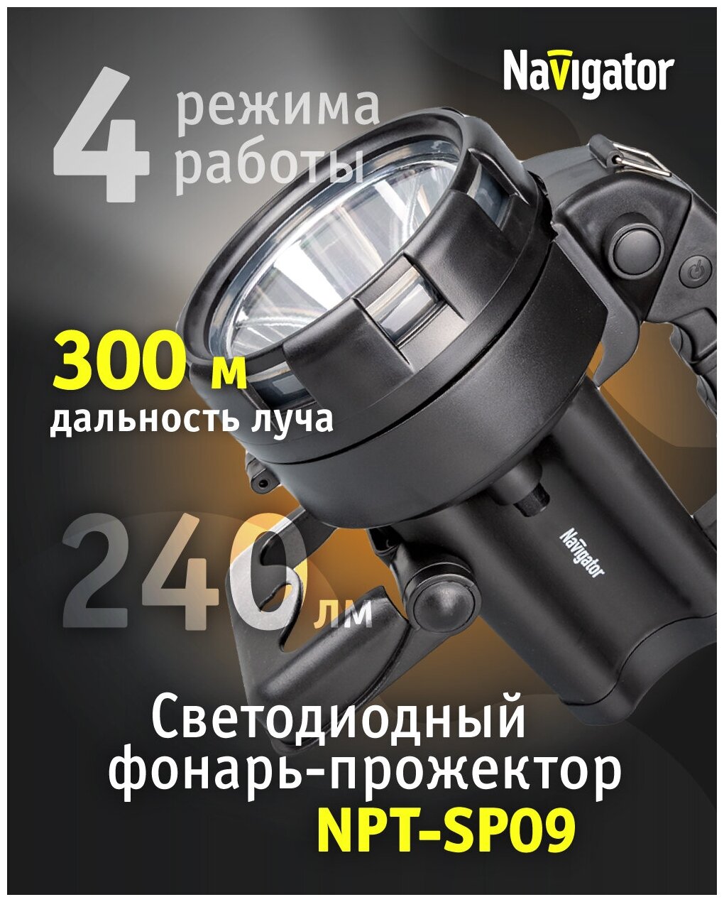 Фонарь Navigator 94 963 Npt-sp09-accu Прожект. Cree 1х3Вт+4LED, аккум.4В, 4Ач. 286651