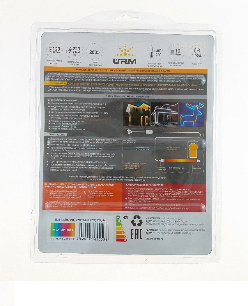 Ниже Вы можете прочитать отзывы на Светодиодный гибкий неон URM 2835-120led, IP65, мультицвет, 220V, 10W, 5м С26018, ознакомится с подробными характеристиками, посмотреть интересные обзоры и фотографии на Светодиодный гибкий неон URM 2835-120led, IP65, мультицвет, 220V, 10W, 5м С26018.