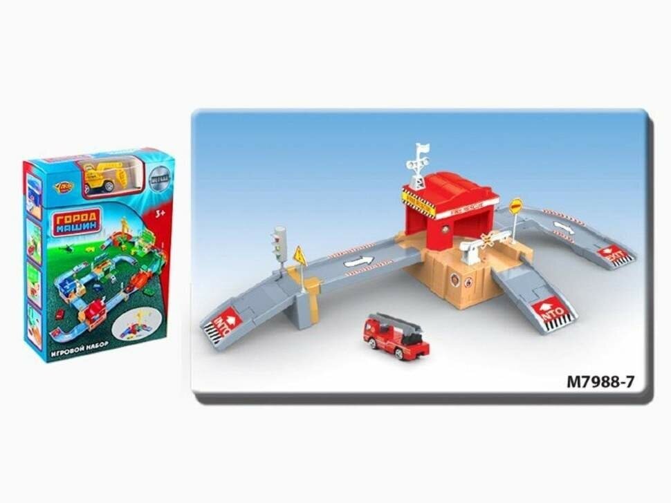 Набор игровой пожарная станция, 1 мет. маш. 8х21,6х6,2 см, арт.0607-13/M7988-7