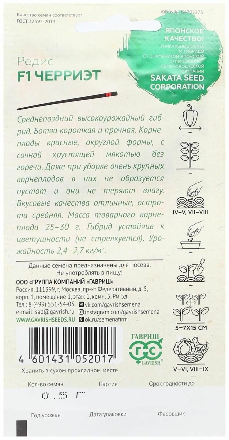 Семена, Гавриш, Редис, Черриэт F1, 0,5 грамма, Саката интересное:
