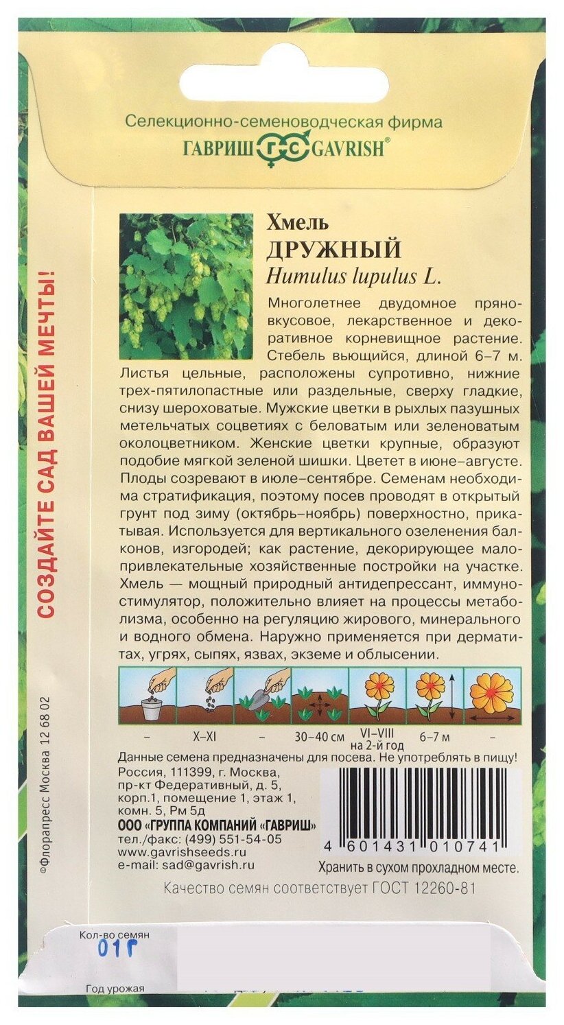 СохранитьХмель Дружный 0.1 грамма семян Гавриш интересное: