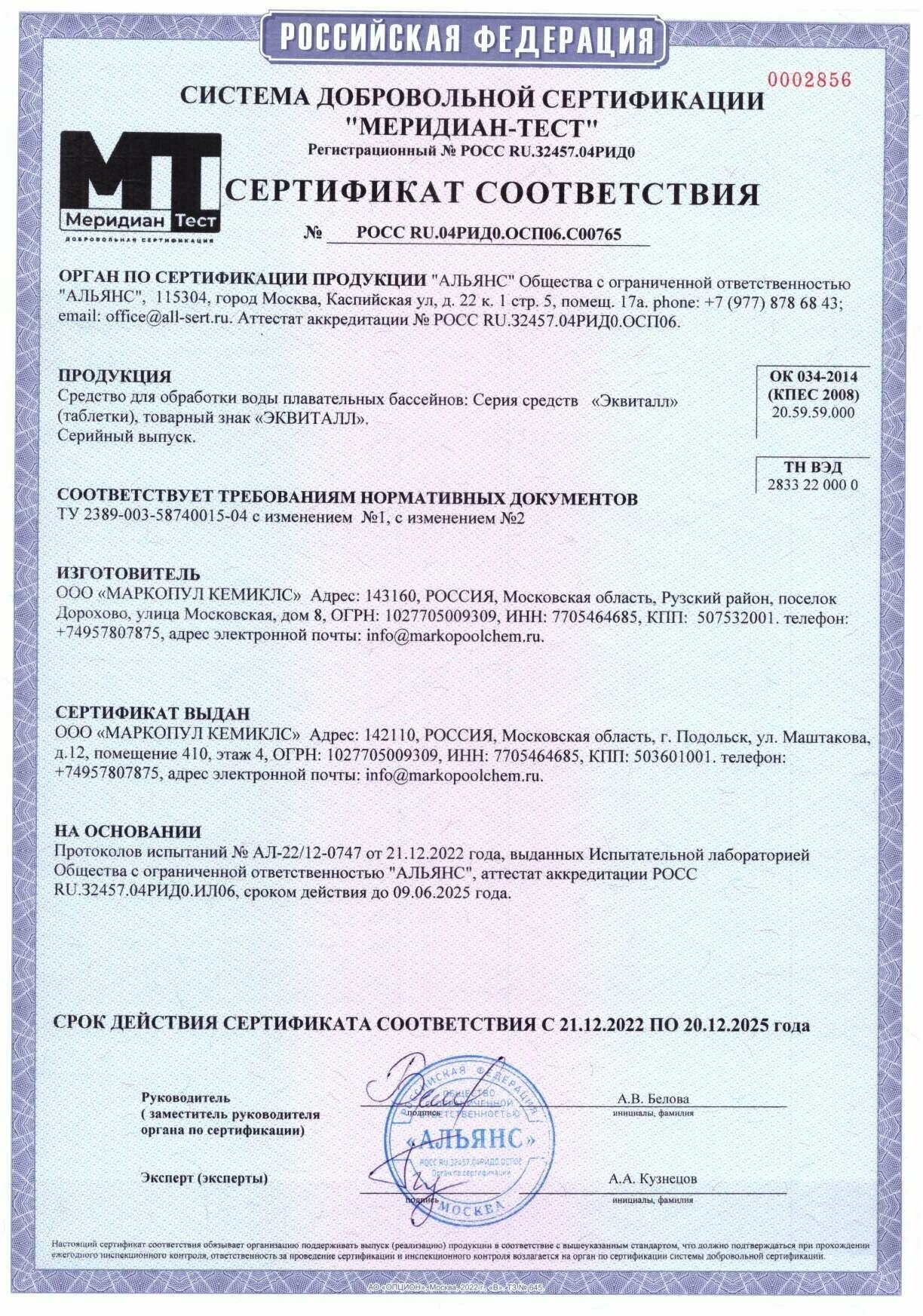 Химия для бассейнов Маркопул Кэмиклс Эквиталл 1 кг таблетки М32 .