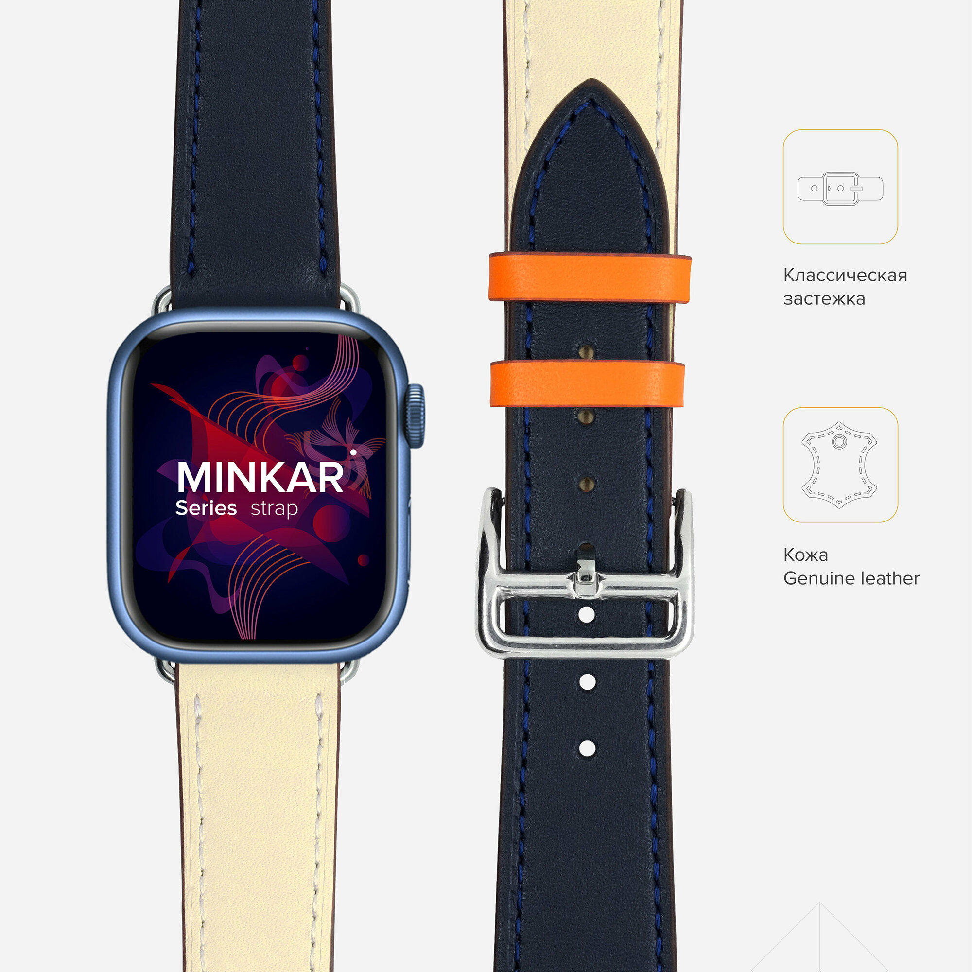 Купить Кожаный ремешок для Apple Watch 42/44/45 mm LYAMBDA MINKAR LWA-03-44-ICO