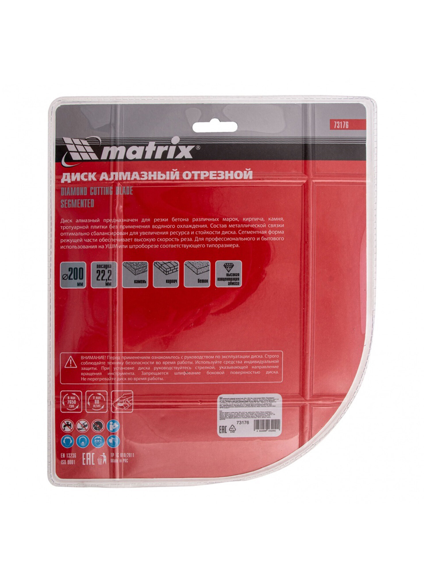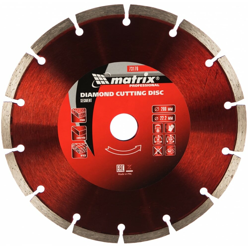 Диск алмазный MATRIX 73176 отрезной сегментный, 200 х 22,2 мм, сухая резка