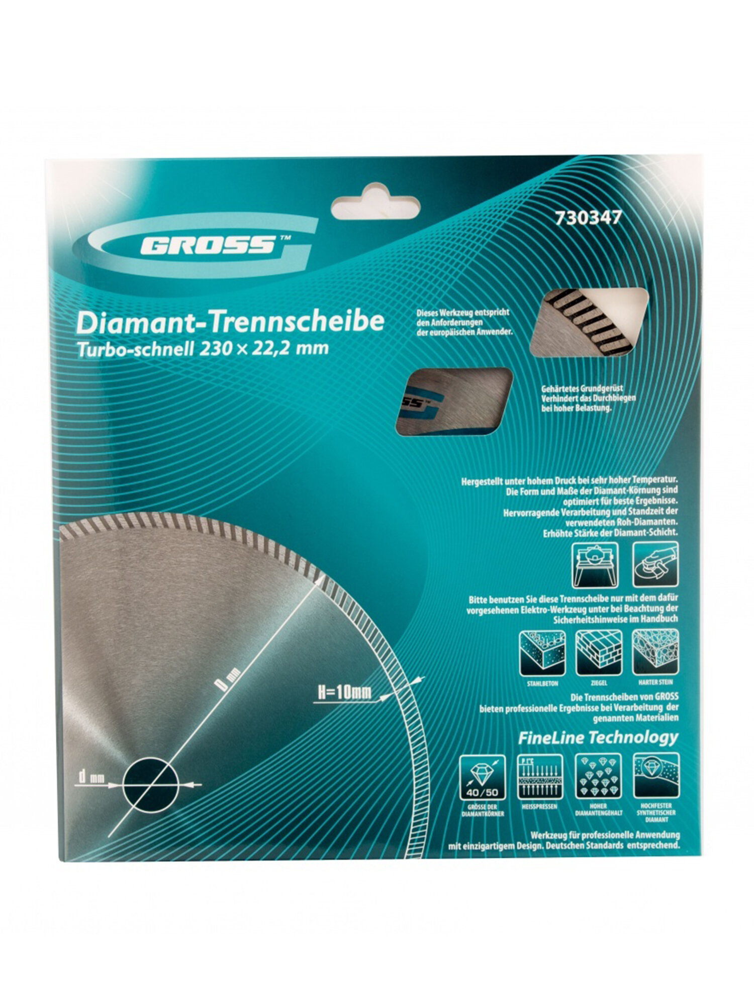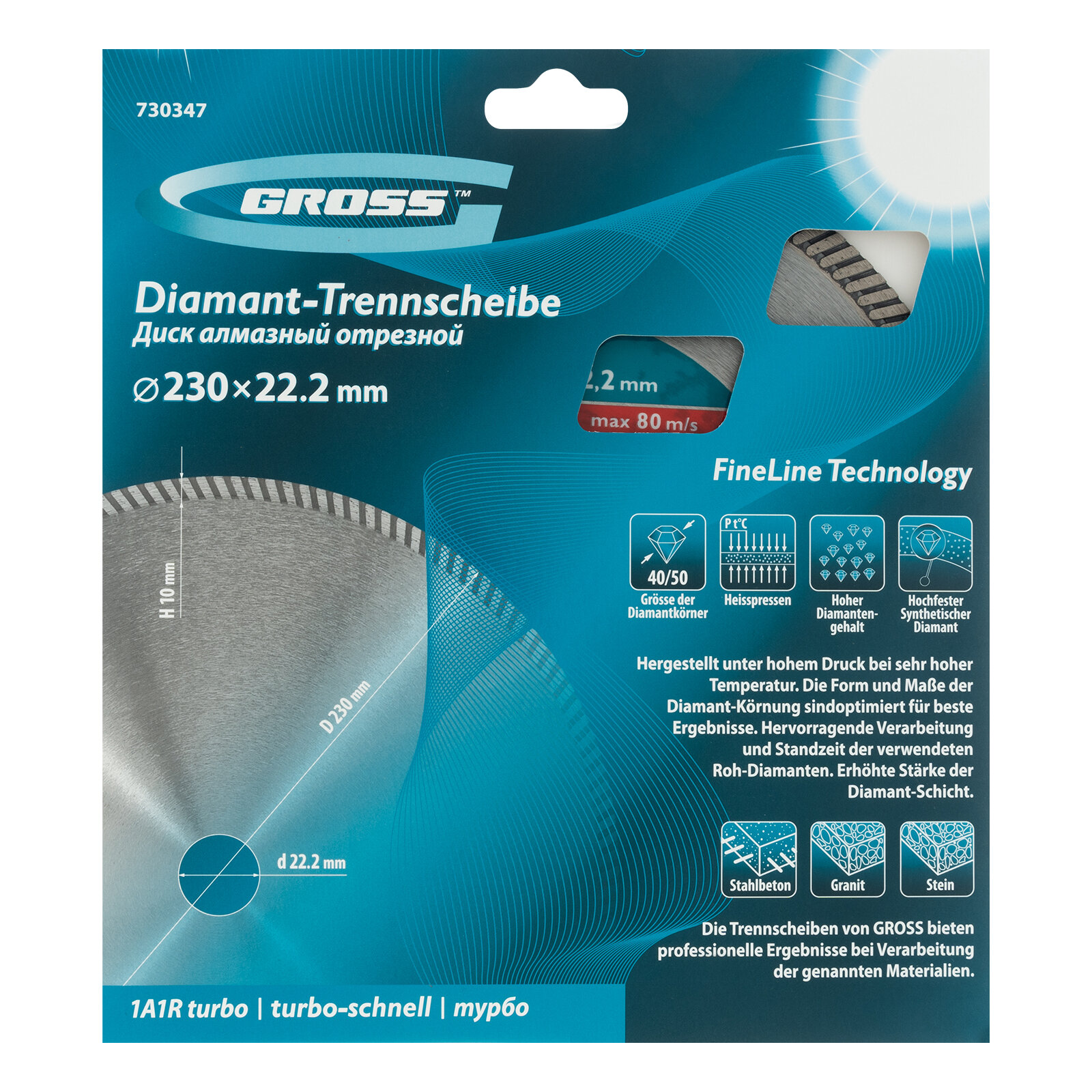 730347 Диск алмазный ф230х22,2мм, турбо, сухое резание// Gross