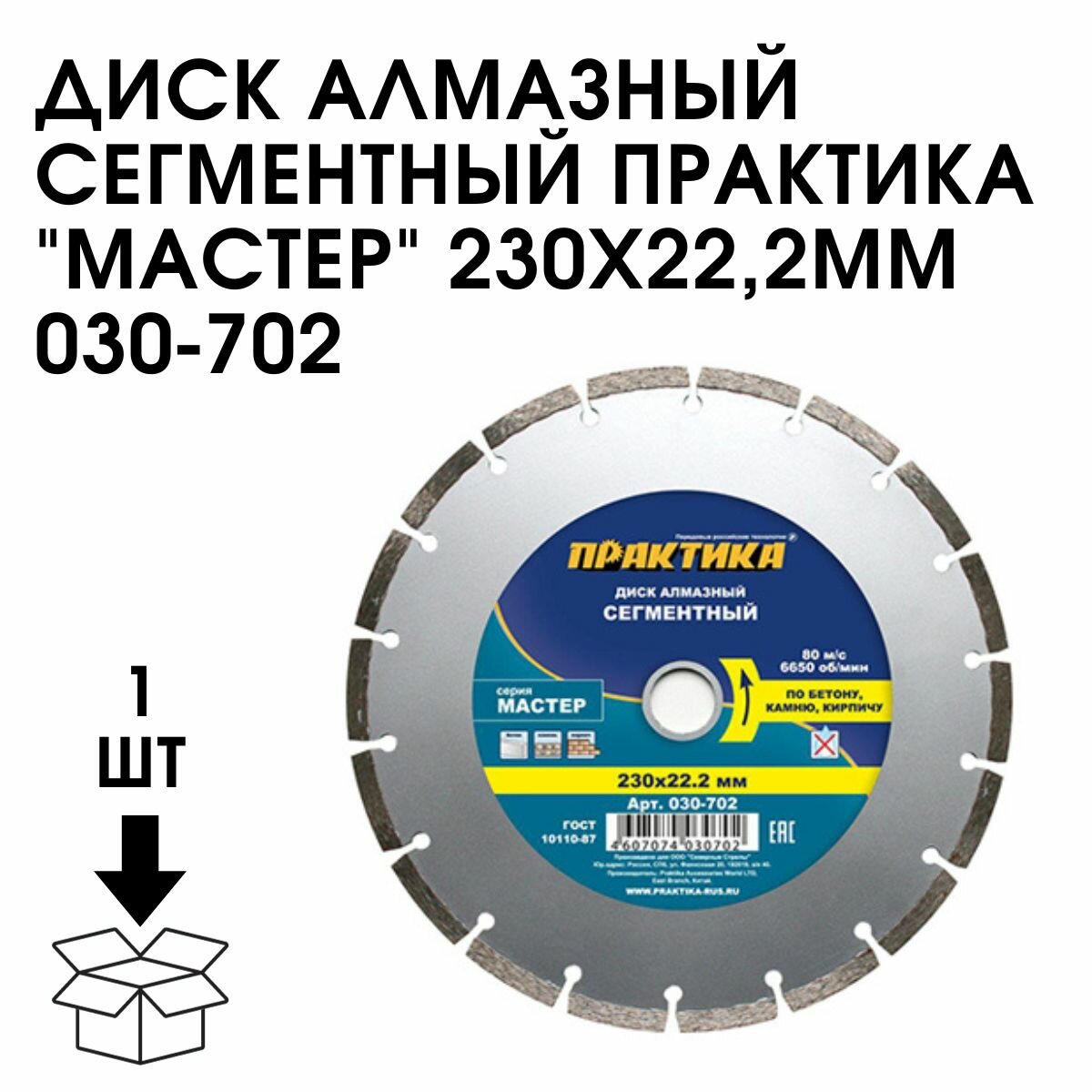 Диск алмазный сегментный ПРАКТИКА "Мастер" 230 х 22 мм (1 шт.) коробка ("Мастер" 230 х 22 мм (1 шт.) коробка)