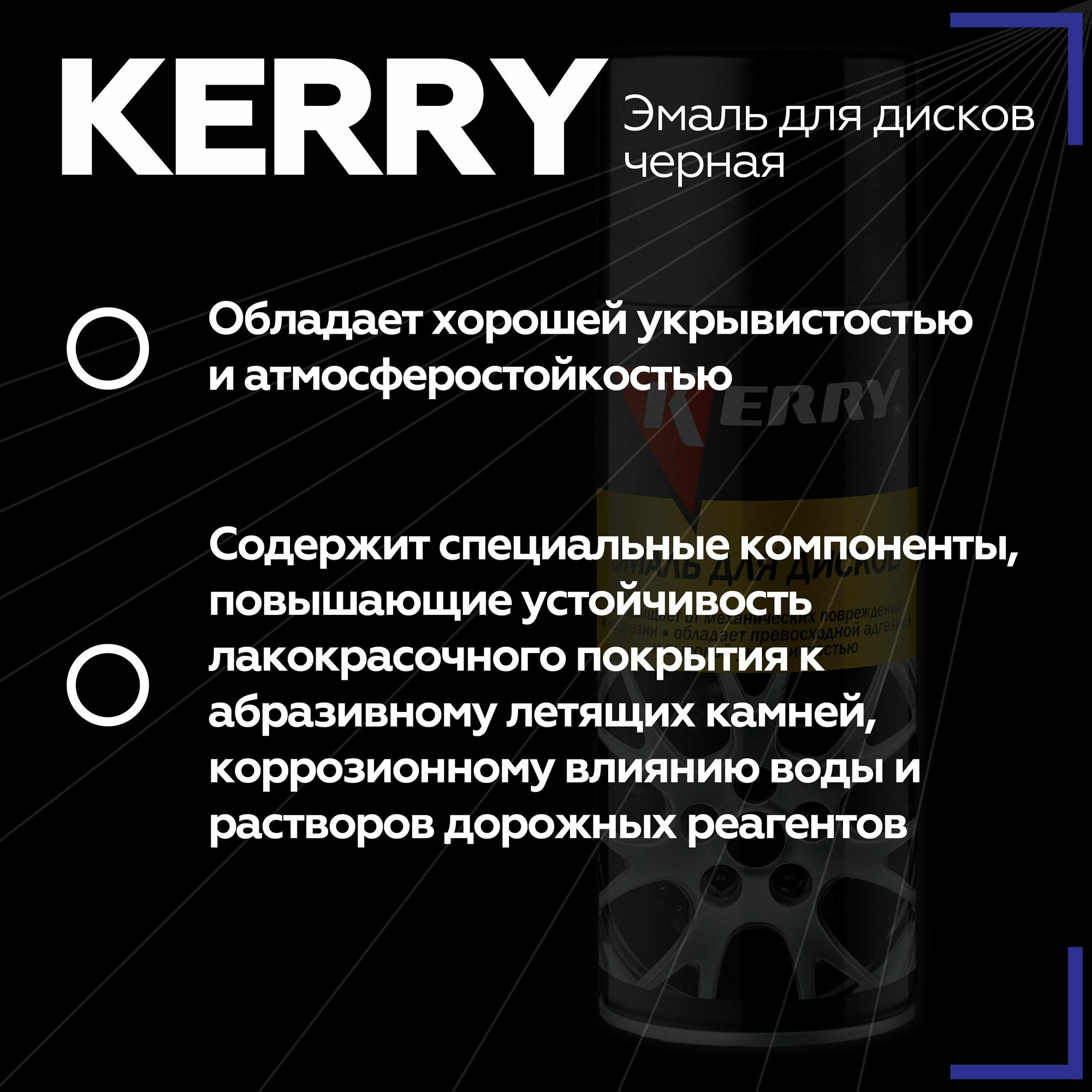 KERRY аэрозольная Эмаль для дисков чеpный матовый, 520 мл