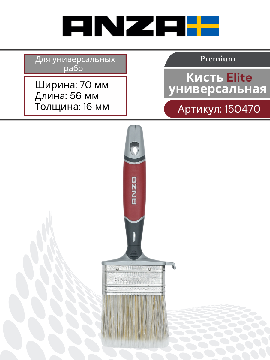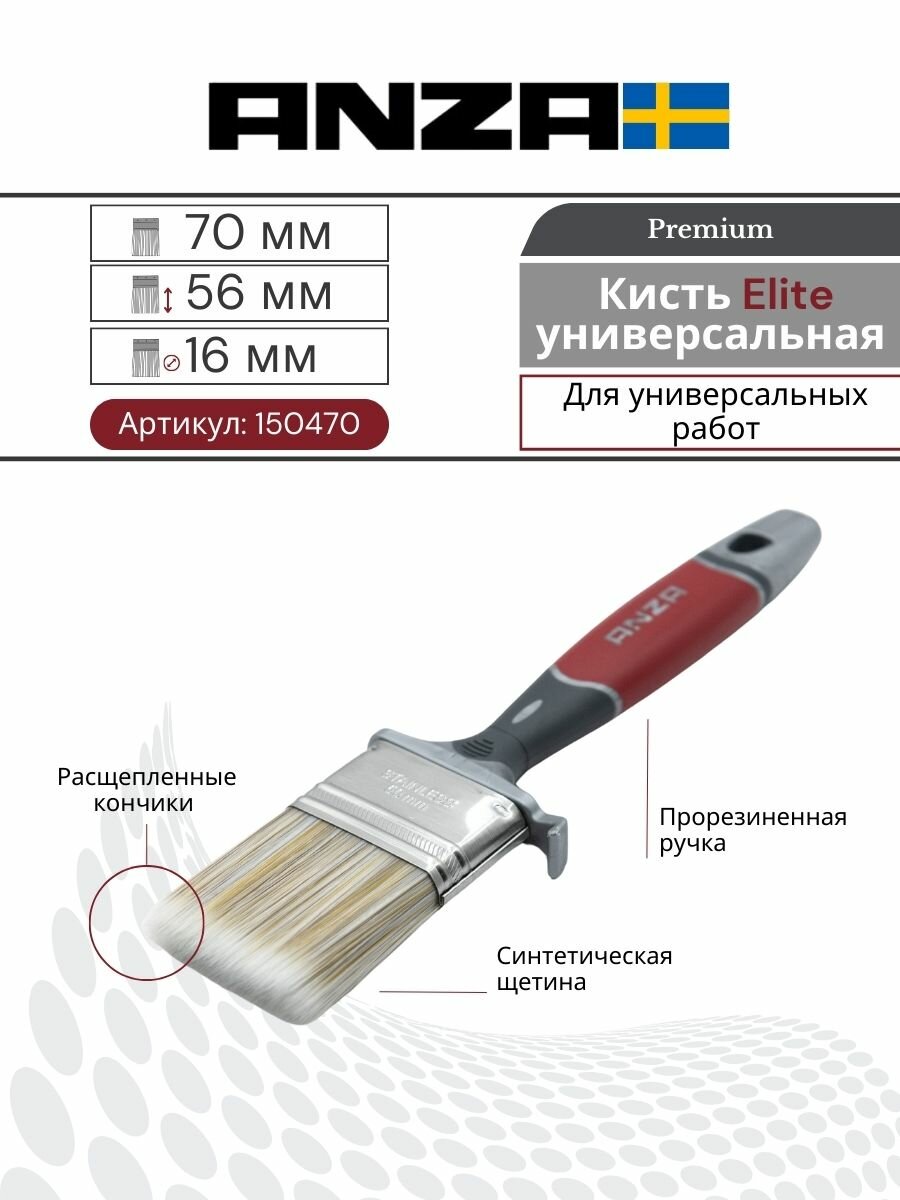 ANZA ELITE 150470 Кисть плоская универсальная синтетическая, прорезиненная ручка (70 мм)