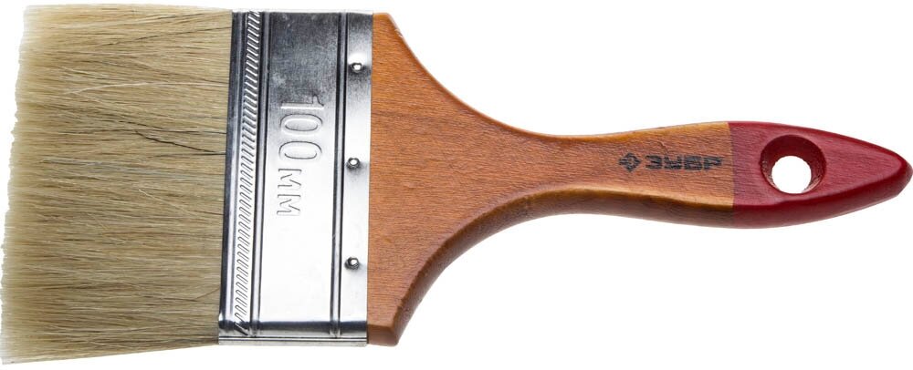 Кисть плоская, натуральная щетина, деревянная ручка, 100мм ЗУБР "УНИВЕРСАЛ-МАСТЕР"